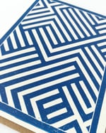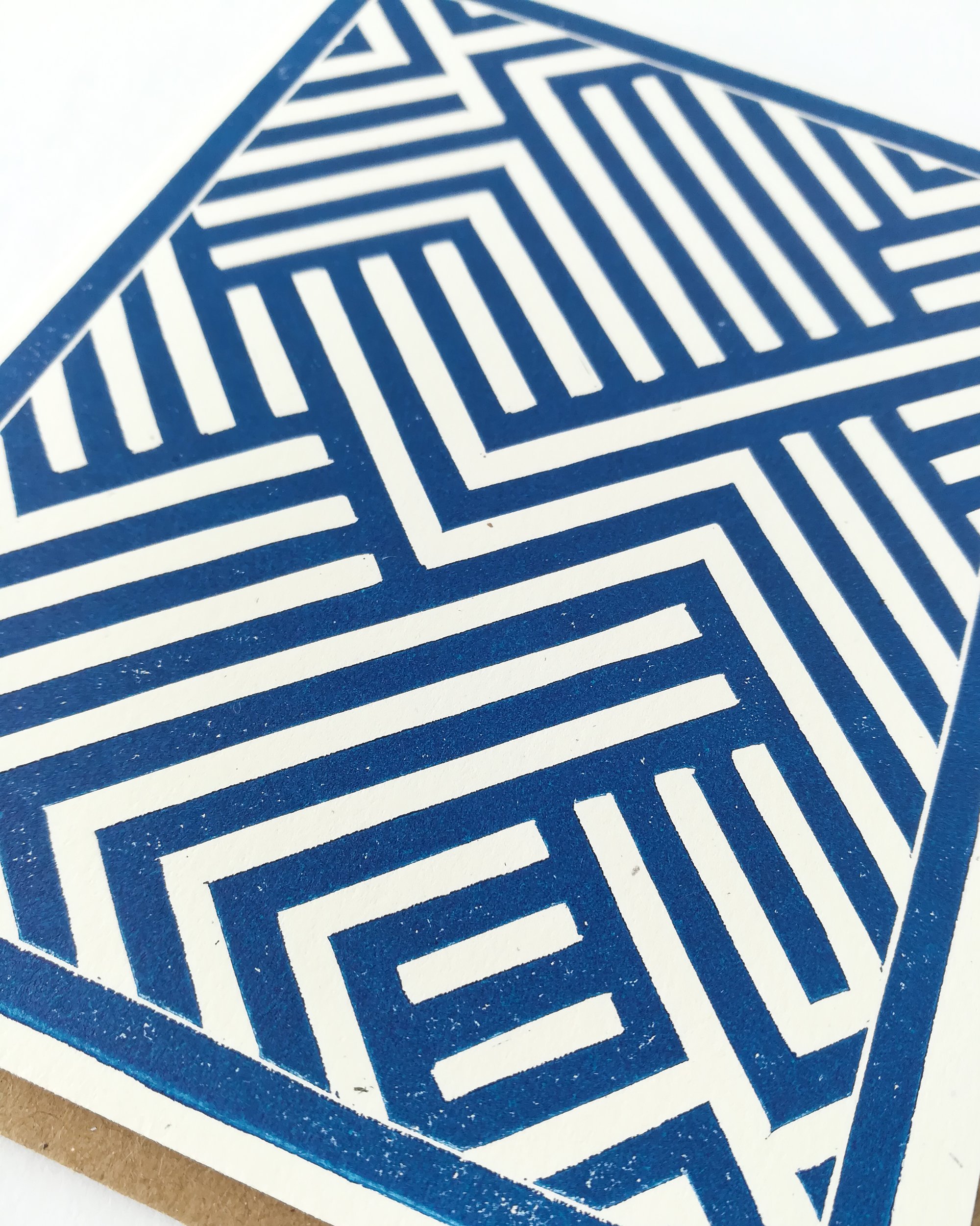 This little abstract lines card in dark blue is a bit of a statement greeting (if that's such a thing?). A good choice when you want to give your message some arty flair! This geometric pattern was drawn by hand by me, then carved into a block, and printed in small batches using an etching press. Available as single cards or as a set of 6 (with or without a kraft paper box ready for gifting).