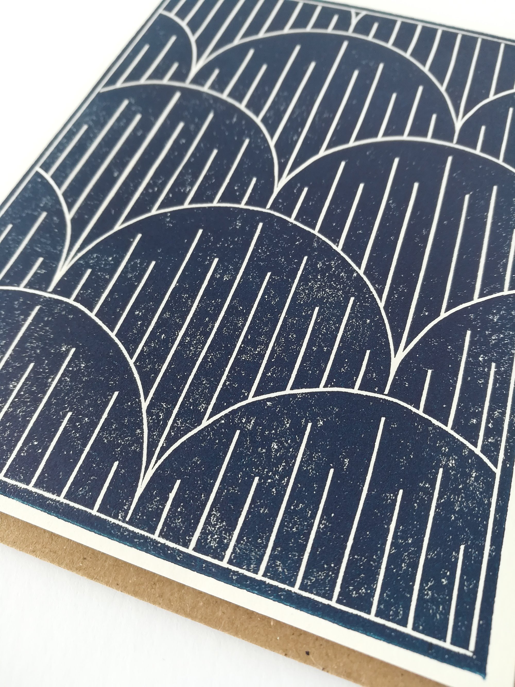 Perfect for any occasion, this art deco inspired fan pattern was drawn by hand by me, then carved into a block, and printed in small batches using an etching press. Available as single cards or as a set of 6 (with or without a kraft paper box ready for gifting).