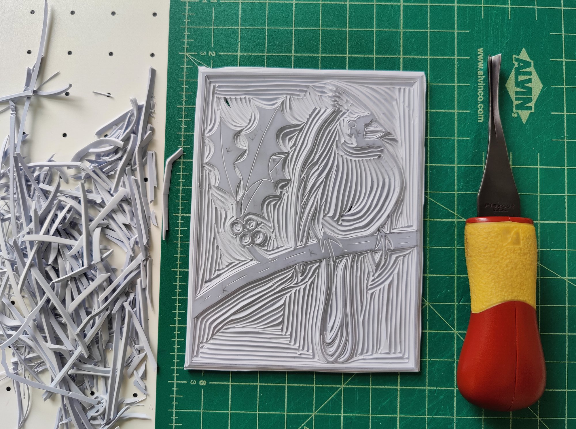 Holiday Northern Cardinal Linocut Card