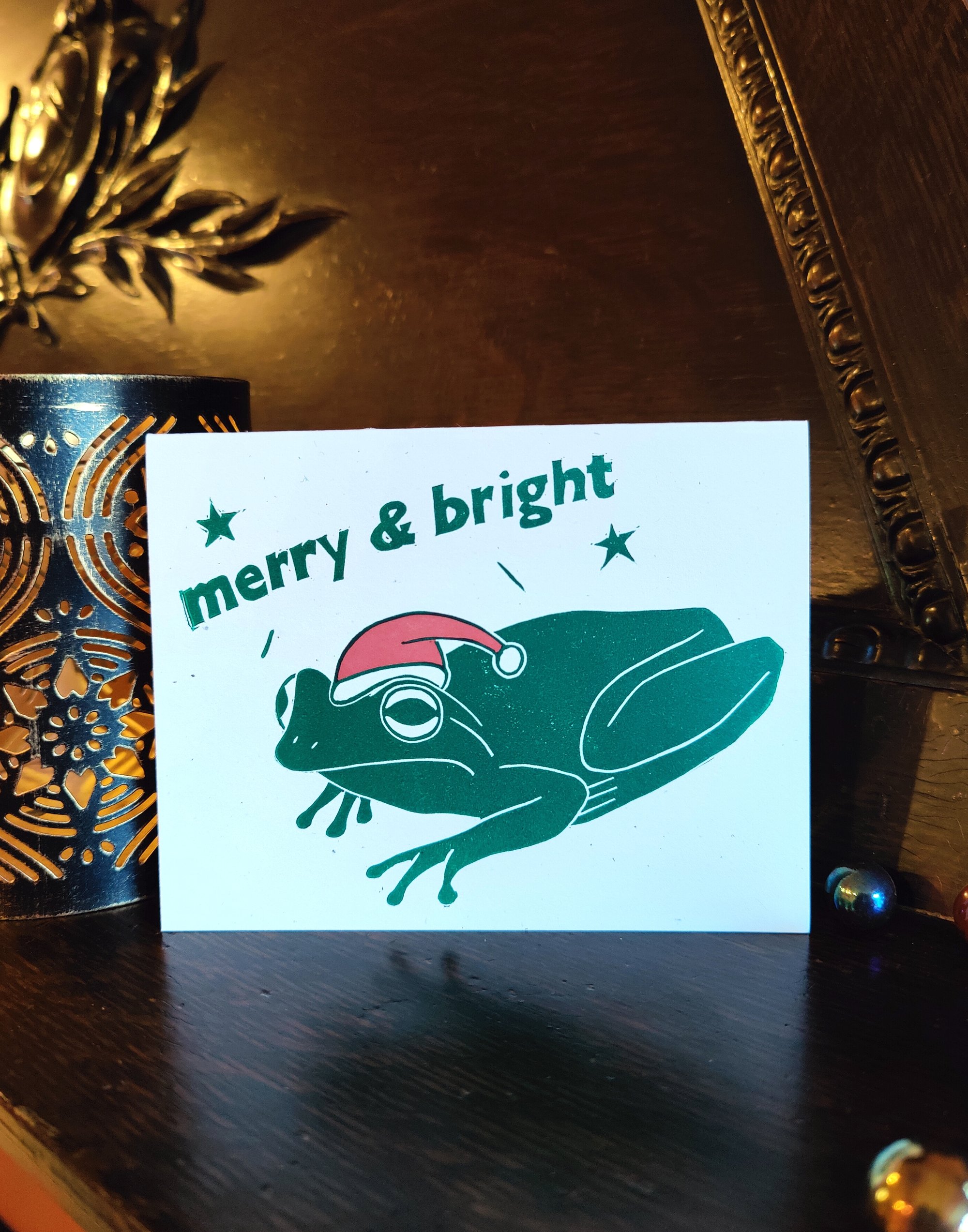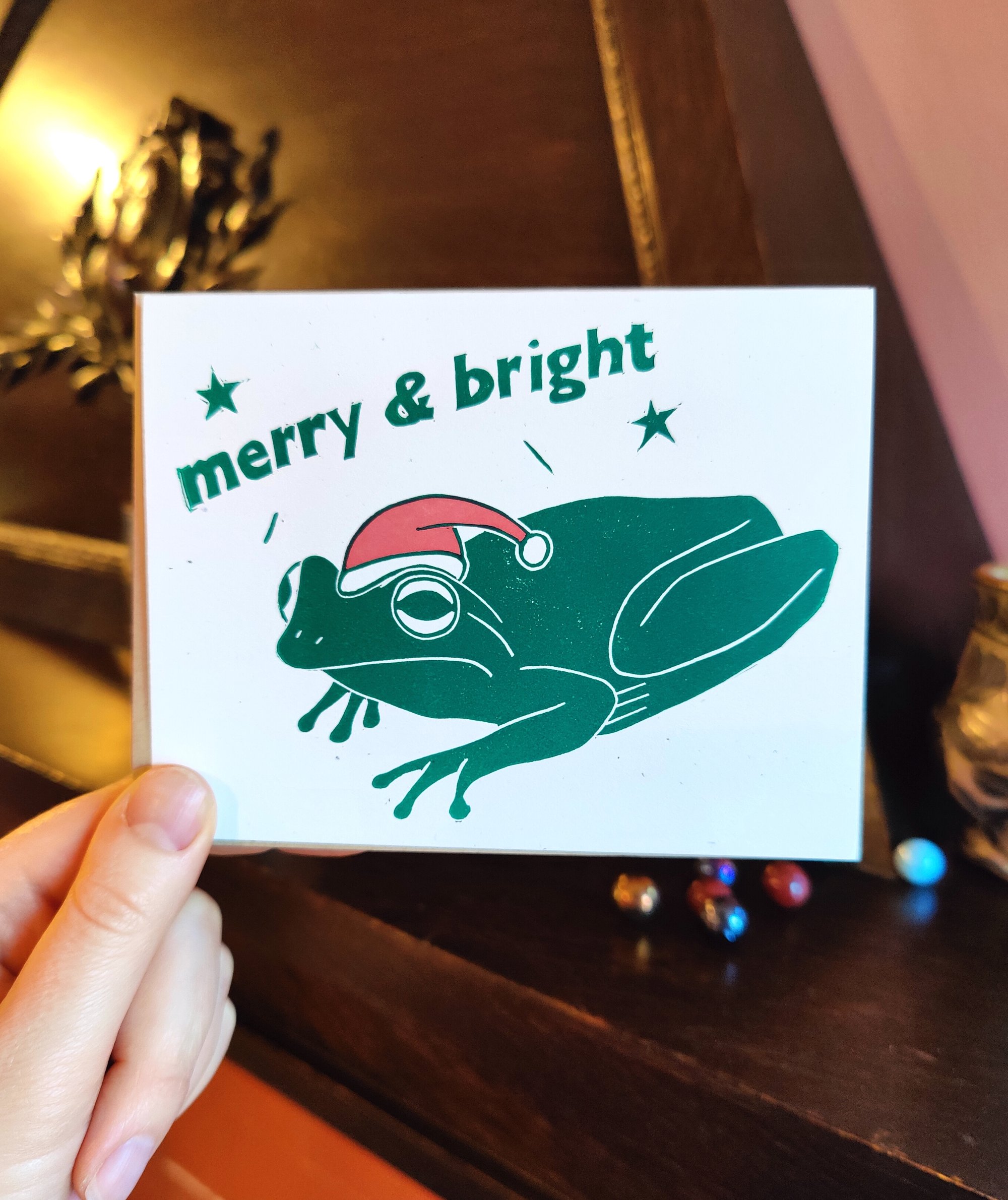 Perfect for the reluctant Christmas card sender! My hand-carved merry and bright Christmas frog is bound to raise a smile with your recipient.
